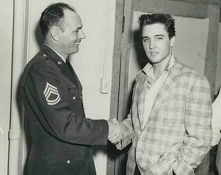 In this photo, Ginger’s father (left) appears with Elvis Presley. They met during Elvis’s time in the army.